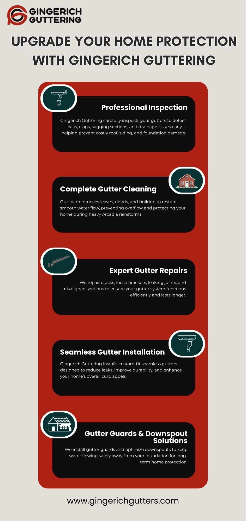 Protect your home with professional gutter services Arcadia IN from Gingerich Guttering. We provide expert installation, repair, cleaning, and seamless gutter solutions to ensure proper drainage and long-lasting protection against water damage in every season.